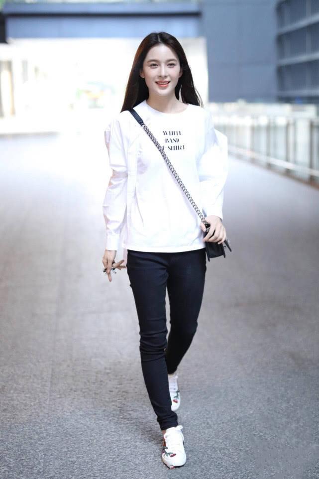 白衬衫除了单穿还有别的穿法?看赵韩樱子就把白衬衫当成了一件薄外套,内搭一件印有字母的白T,显得青春有活力。下身是简单的黑色紧身裤,脚下搭配一双白色休闲鞋,凸显了高高瘦瘦的身材。原来职业的白衬衫也能穿出不一样的美感,赵韩樱子的穿搭还真是不简单呢。