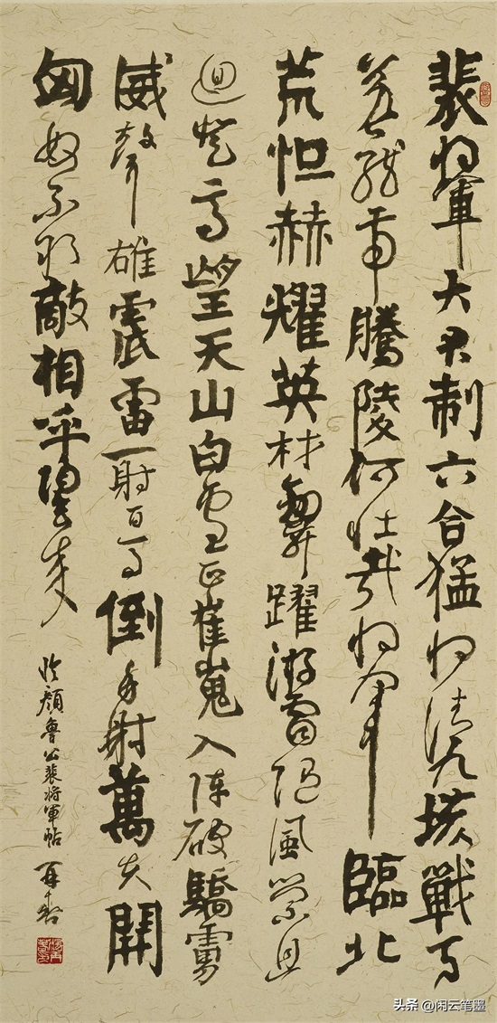 这幅字是临写的颜真卿的《裴将军帖》。这个帖的风貌和气韵,都表现了出来,可见他的临帖水平还是很高的。