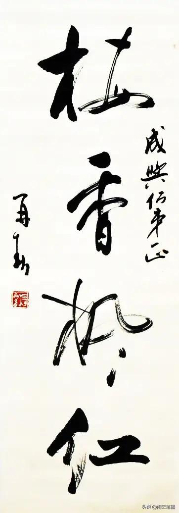 大字作品稳健厚实,潇洒酣畅。章法出人意料又在情理之中,笔法变幻莫测又在法度之内。