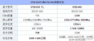 GTX1050Ti和GTX1060显卡的性能相差多少?