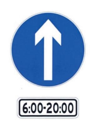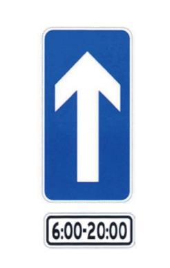 国标6.2条对“直行标志”的定义是,表示一切车辆只准直行。有时间、车种规定时,应用辅助标志说明或附加图形。国标所指的一切车辆,包括所有各种类型的机动车和非机动车。在道路交通管理工作中,当左右两侧道路因某种原因被阻断或因交通管制需要被封闭,所有车辆不能向左或右转,只允许直行。当管理措施中有时间、车种的规定时,应在主标志下方附加图形或文字辅助标志加以补充说明。如图3表示货车只准直行,图4表示所有车辆6:00—20:00只准直行。