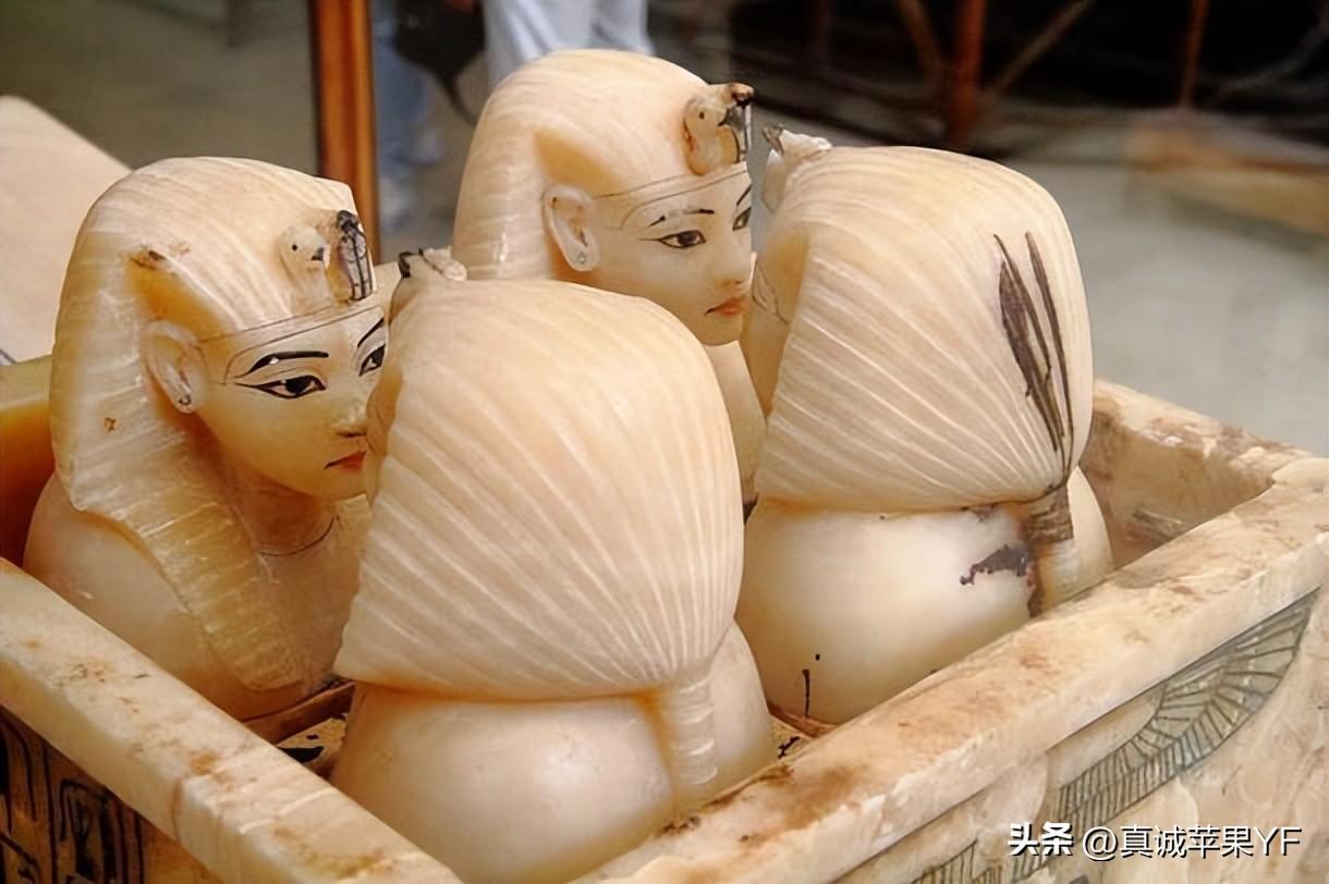 四个装有图坦卡蒙内脏器官的罐子——肺、胃、肠和肝。四位女神保护着