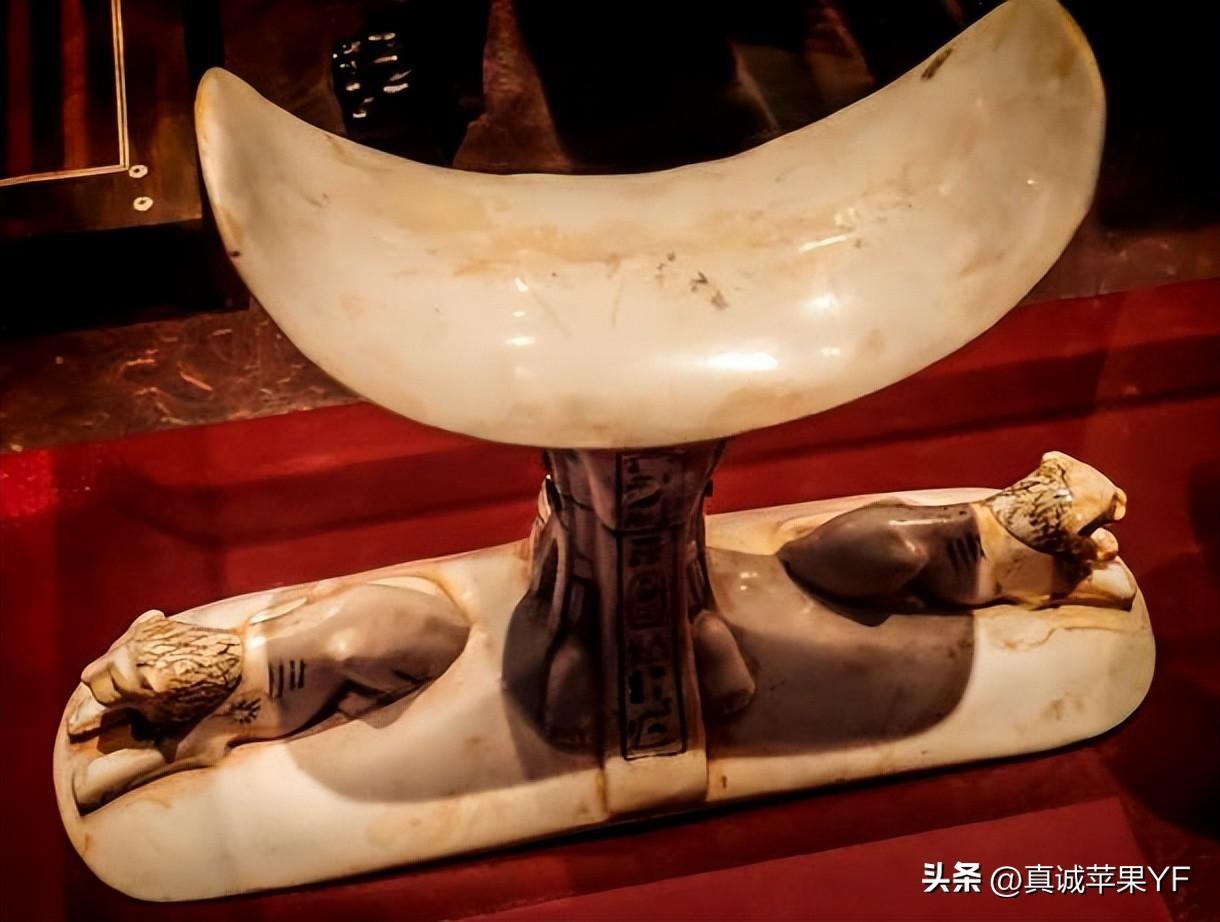 象牙头枕和两只横卧的狮子