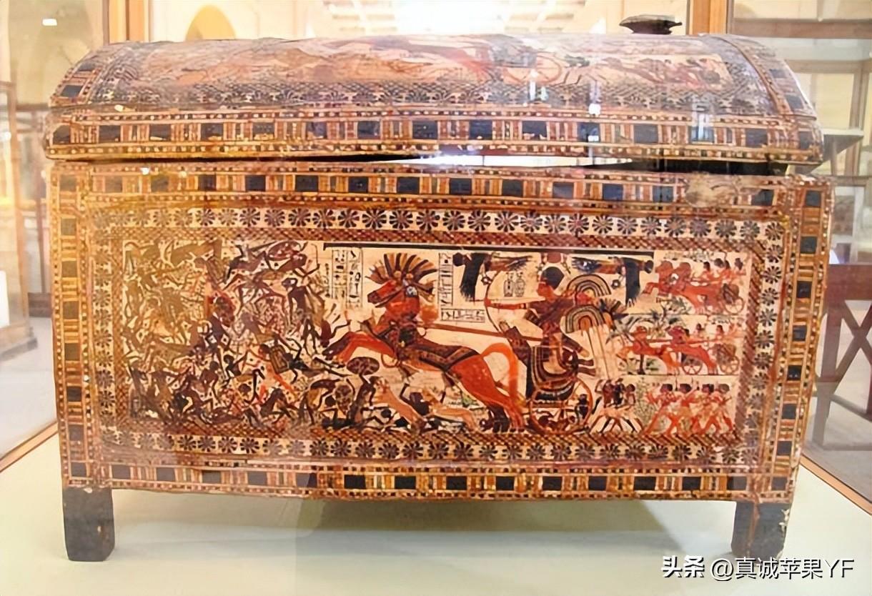 来自图坦卡蒙国王陵墓宝藏的华丽储物箱,采用灰泥和彩绘木材