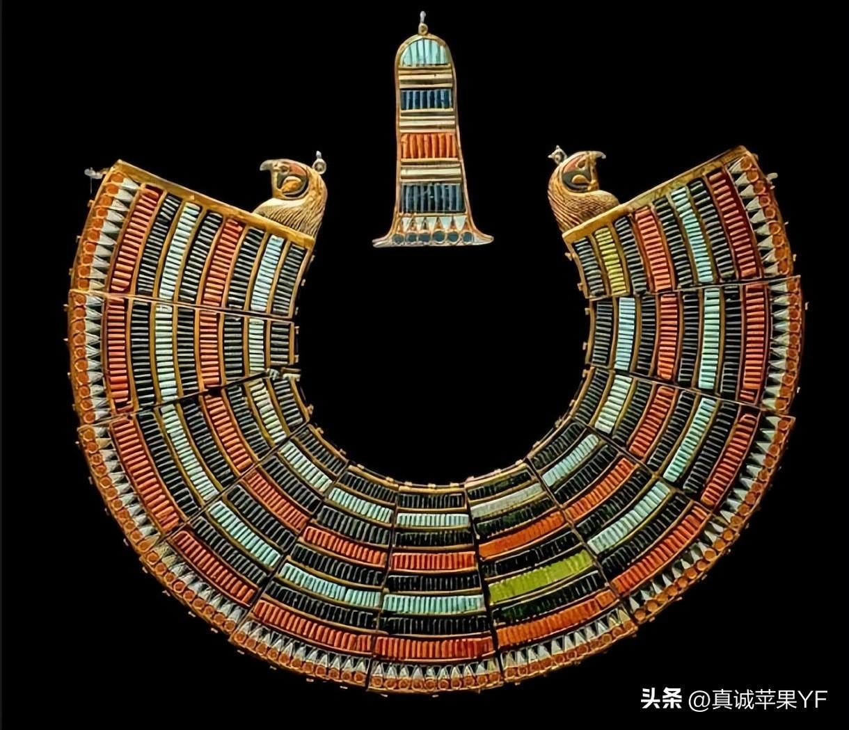 在图坦卡蒙国王的木乃伊上发现的带有鹰头末端的半宝石项圈