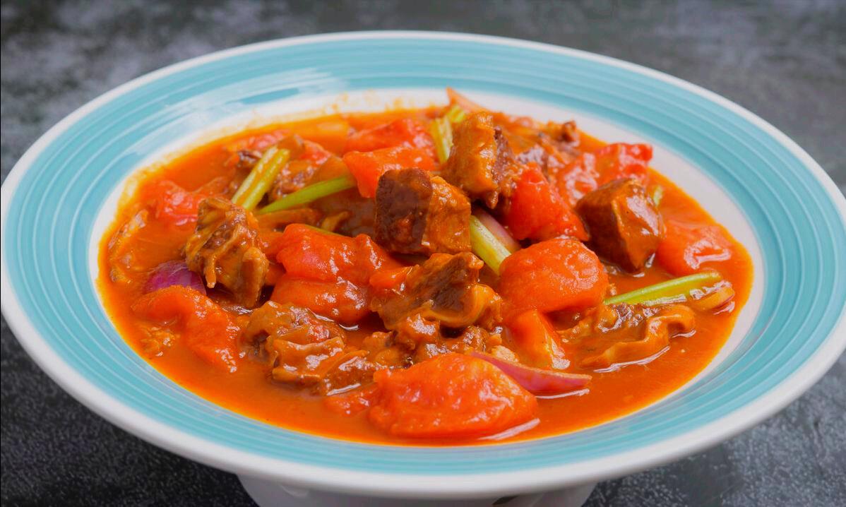 4.中火炖30分钟,还有少许汤汁,挑出调料扔掉,放入切成块的西红柿,继续炖10分钟。