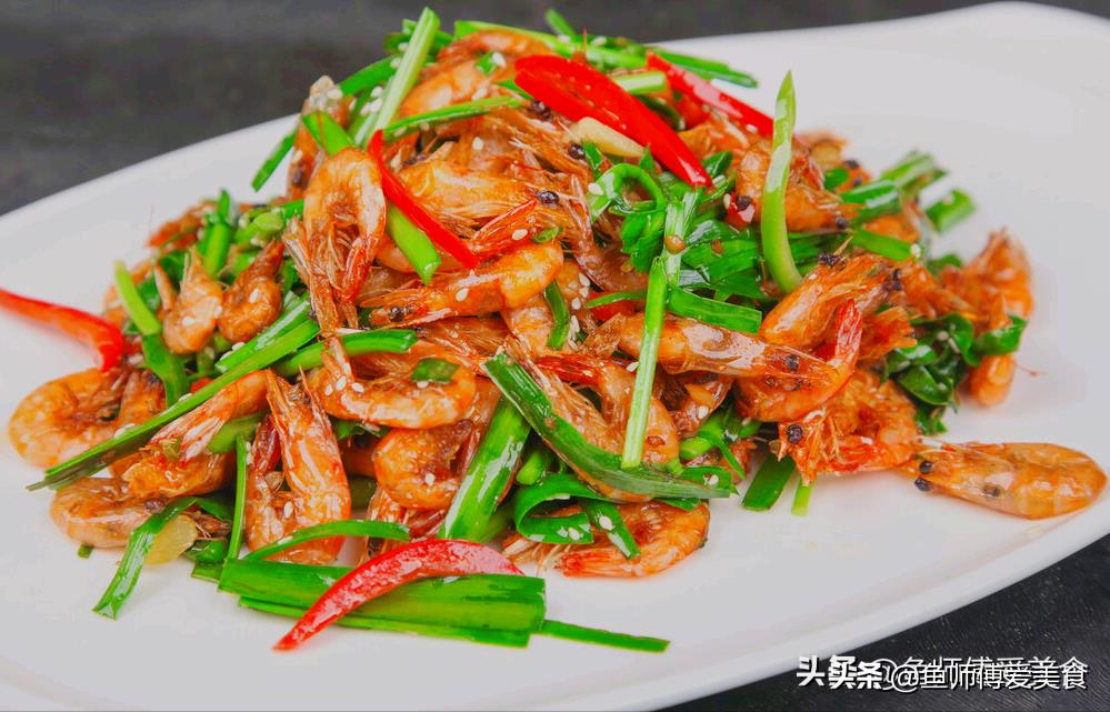 【食材】韭菜少许,小鲜虾500克,大葱,红椒各少许。