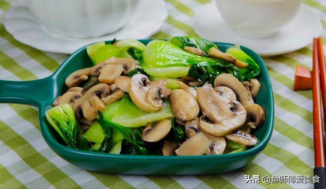 【食材】油菜500克,口蘑250克,葱姜各少许。