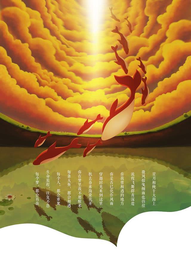 所有活着的人类,都是海里一条巨大的鱼;出生的时候他们从海的此岸出发……他们的生命就像横越大海,有时相遇,有时分开……死的时候,他们便到了岸,各去各的世界。《大鱼·海棠》