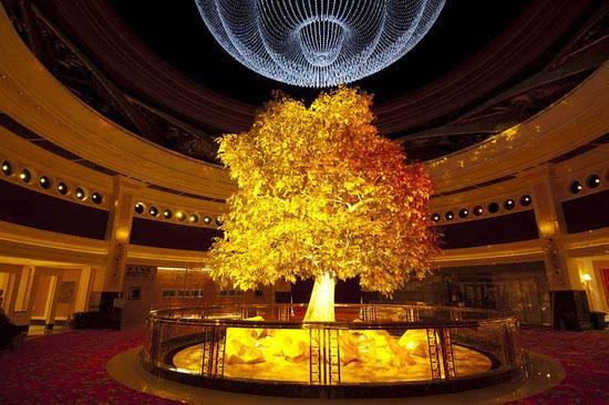 永利酒店也是该城市的一个网红酒店,它独特之处在于这个酒店有一棵用黄金打造的发财树,耗资更是高达2亿,酒店利用这个噱头还专门设计了黄金树出土的表演,观看后的人都会发出一声"有钱真好"的感叹。