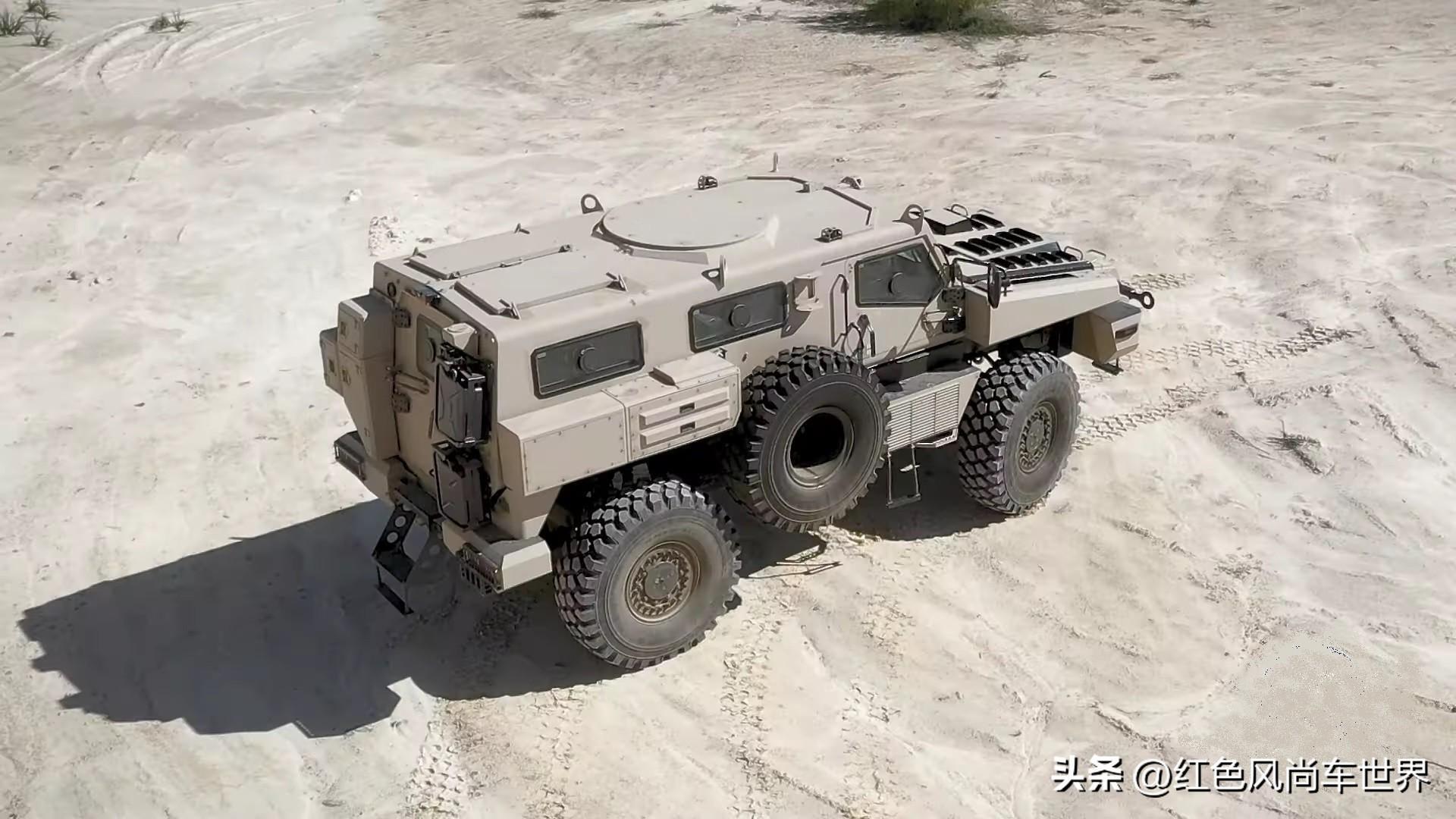 在 6.6 米长、2.6 米宽和2.7 米高的情况下,停车可能会带来挑战。不要认为这只是一辆加强型装甲SUV,掠夺者可以毫不犹豫地涉水 3.5英尺=1.07米(或进行特殊准备),就像它可以穿越1米深的沟渠或向上移动 31 度斜坡(或 60% 坡度)一样容易。其 50 厘米的离地间隙意味着这辆轮式战车几乎可以在任何地方行驶。