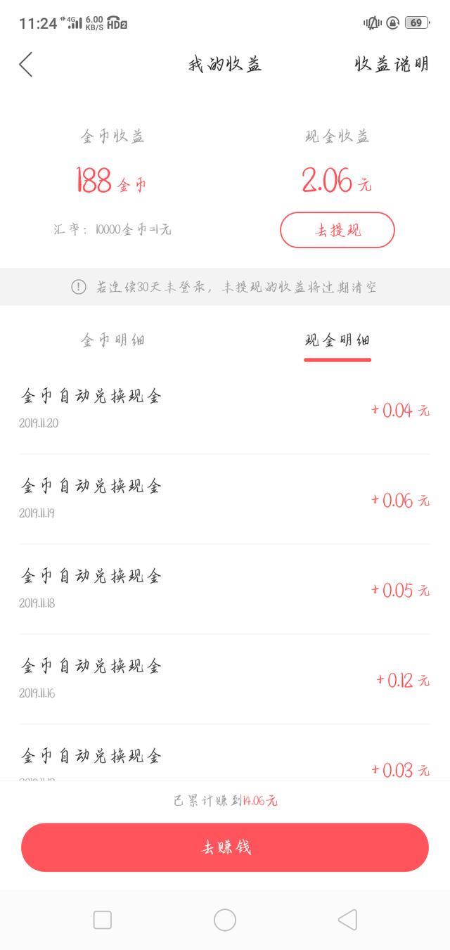 快手上看视频是没有钱赚的,而在快手极速版上却有,看视频赚金币,几秒钟任意看一个视频,送60-70金币,1万金币=1元,次日0点自动兑换,另外每看满6个视频(圆圈进度条转6圈),可以砸一次金币,一般可以获得300左右金币,另外还有每日签到。如果你觉得自己看视频赚的钱少,你可以邀请身边看抖音、快手的朋友来加入这样不仅你的朋友可以赚钱你还有提成。