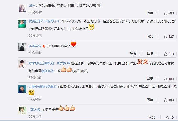 虽然这是一件很小的事情,但是细节体现一个人的人品,网友们纷纷为冬冬点赞,大赞这个下意识的动作。