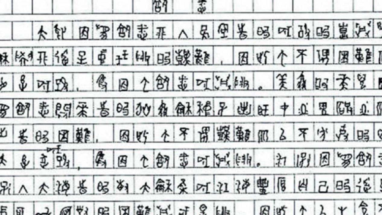 2009年高考结束,全国各地开启了阅卷狂潮。在阅卷的某一天,一位语文阅卷老师突然发现一张神奇的"作文试卷",该作文只有短短百十小字,上面所写的东西宛如"鬼画符",整个阅卷组竟无一人能看懂。由于高考没有硬性规定不能用古代字体回答作文,所以该语文组组长只能请某大学古文教授专门分析这篇文章。在琢磨半晌之后,教授表示该文章由甲骨文、金文、篆文多种语言构成。当然,黄蛉虽然对古文的造诣较高,但该文章翻译过来与高考题目相差甚远,所以只能给6分的成绩。