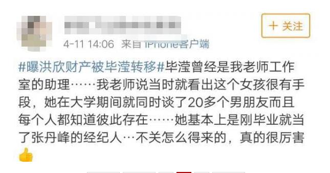 另一边也有消息指出,张丹峰的出轨风波都是毕滢一手策划的,为了逼洪欣和张丹峰反目,即使不离婚也无法破镜重圆。不管怎么看,大家都觉得张丹峰被毕滢摆了一道,但他还傻傻的为她辩护,实力上演“为了你我愿意和世界为敌”的魔幻狗血剧情。网友嘲笑张丹峰智商是真的很低,不过随着毕滢的曾经被扒,大家发现毕滢的段位真高。