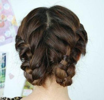 这款辫子发型对于心灵手巧的姑娘们来讲,更是很别致感的呢,左右对称的编盘发很是古典唯美呢,而搭配上刘海后,更是很能加分的呢,既经典又很有味道呢。