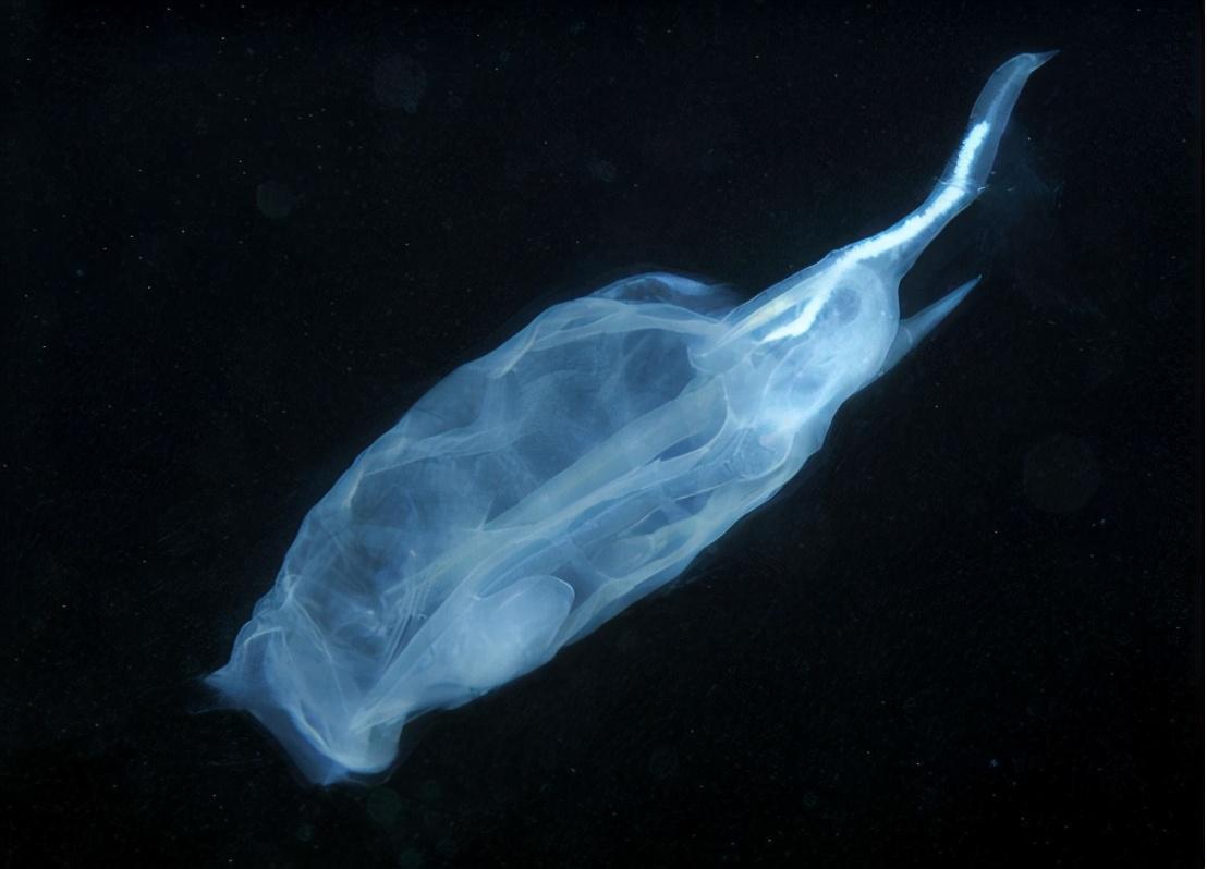 通过这名潜水者提供的视频资料,很快,专家就辨认出来,这种形状好像是凝胶的“幽灵鱼”,事实上是樽海鞘,它们是海洋生物的一种,虽然看起来好像是鱼,但事实上,它们并不是鱼类,而是属于海洋无脊椎动物,可以说是海洋中非常古老和原始的居民了。