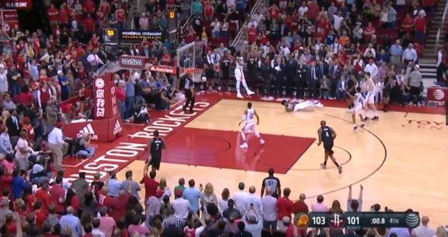 保罗轮休,在1.4秒前,火箭队被太阳队一记两分上演绝杀剧情,然而就在仅仅1.4秒,只需1.4秒,这种局面就完全逆转,对方的防守注意力都在哈登身手,格林见机行事,溜到三分线外底角处,接到队友的发球,毫不犹豫抬手就是一记三分命中,最终上演反绝杀,以1分之差,击败太阳,十佳之最,当之无愧。