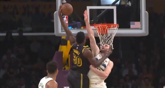 努尔基奇在边侧弧顶,接到中线三分线外队友的一记传球后,一个转身就晃过对方防守,此时对面内线门户大开,努尔基奇随手就是一记单手劈扣。