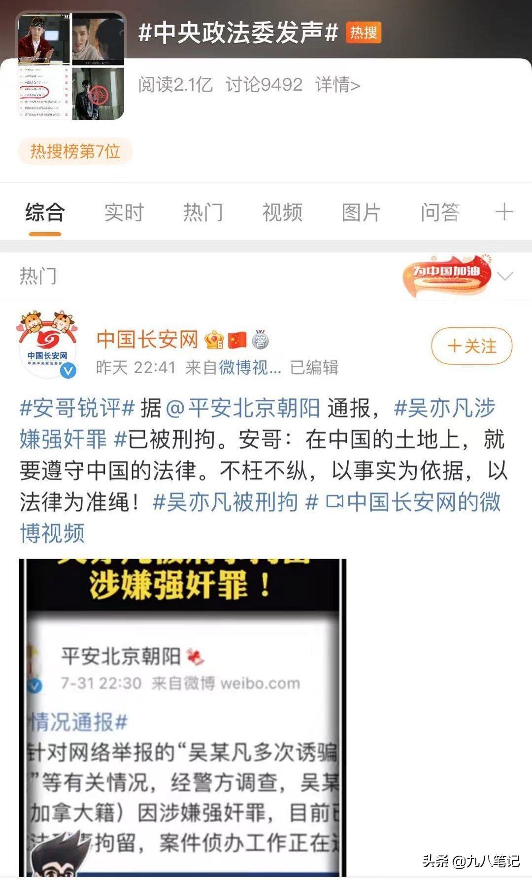 吴亦凡被正式通报之后包括人民日报、中央政法委等多个官媒都接连发声,在法律面前不分国籍,更没有流量,越是名气大的艺人越应该谨言慎行。