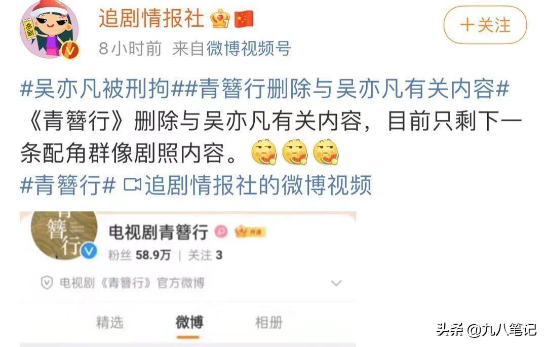 之前吴亦凡和杨紫合作出演的《青簪行》也无缘和大家相见了,官方微博已经删除了吴亦凡相关的所有消息。