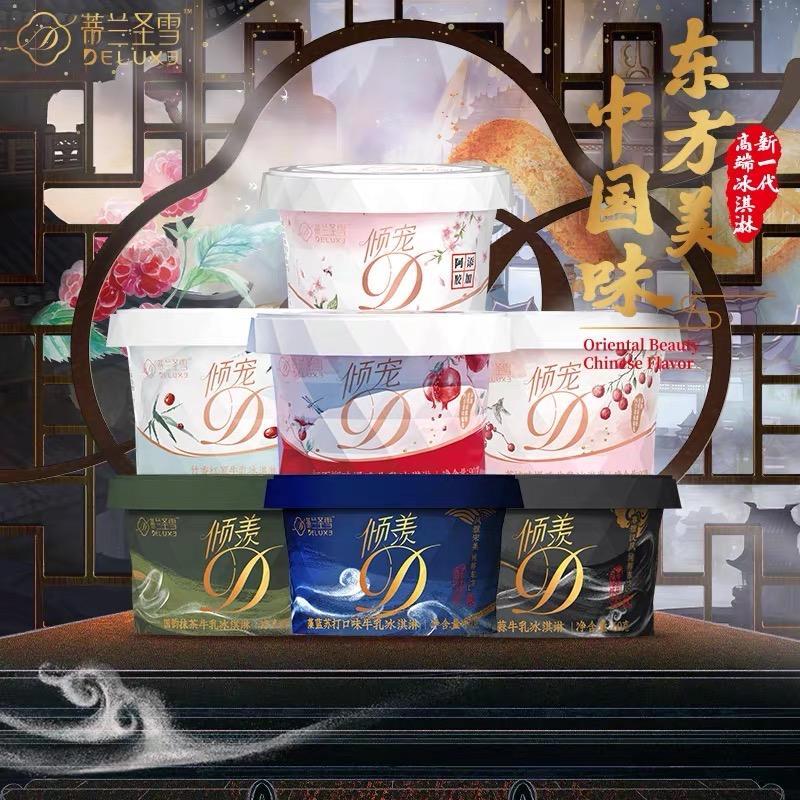一时间群雄并起,连传统品牌伊利和蒙牛也纷纷入局高端雪糕赛道,蒙牛蒂兰圣雪冰淇淋23元一盒,伊利须尽欢团扇冰淇淋需要22元一根,全部模仿钟薛高,主打中国风。