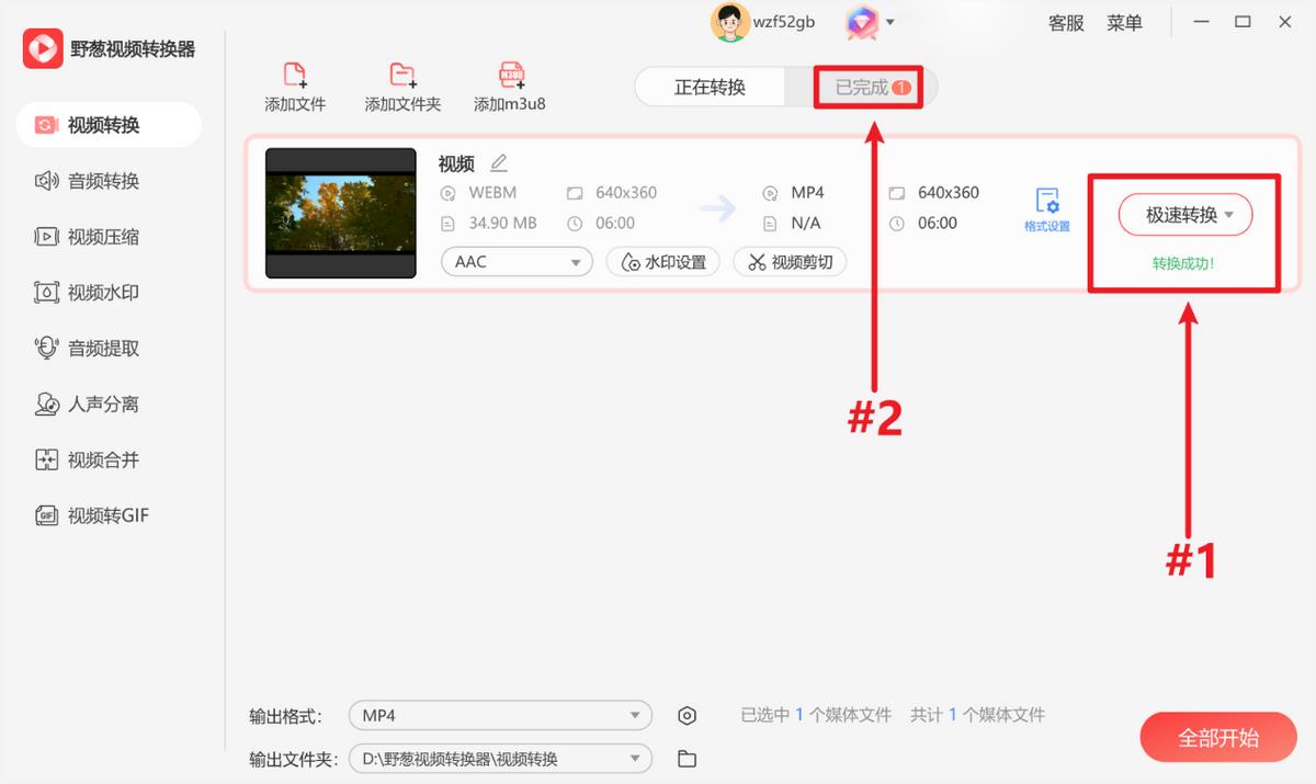 WebM格式的局限性在于部分老旧设备和软件可能不兼容。为解决此问题,将WebM转换成MP4格式是一个明智的选择。MP4广泛支持各类设备和平台,提高了文件的通用性和可播放性。为了实现简便高效的转换,推荐使用野葱视频转换器。其小巧易用,保证转换质量,只需3个步骤轻松完成转换。