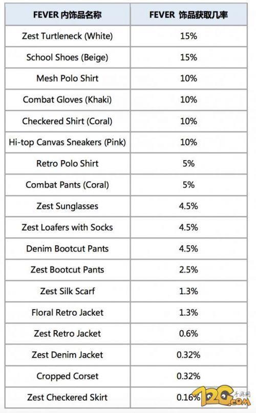 绝地求生新箱子fever爆率 饰品开出概率一览