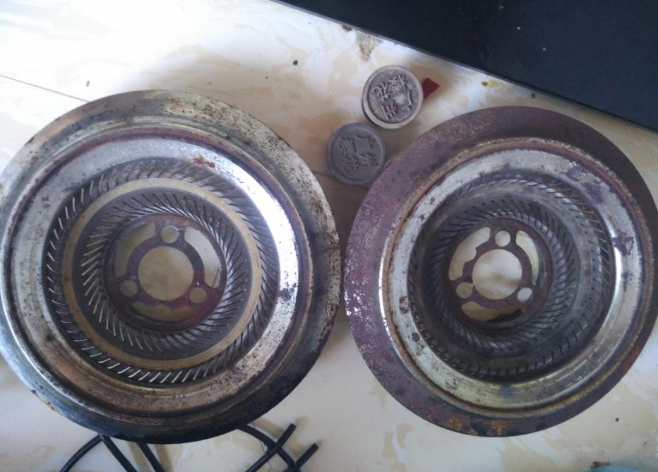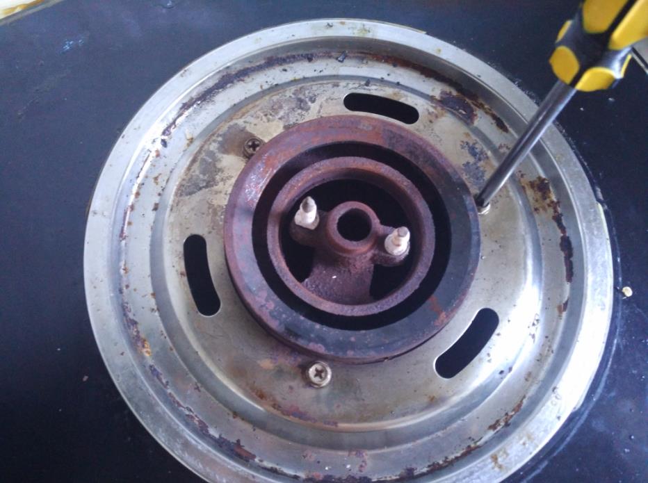 3、取下灶头盖。中间那个小盖需要用锤子撬下来。注意柔和用力,换着位置撬。