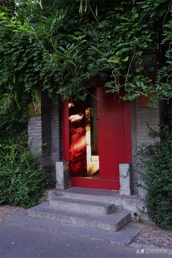 北京大学的一些小院很有味道,绿植爬满了石头砌成的墙体,夕阳从院子的红色的木门框泻出,将太阳变成了橘红色。