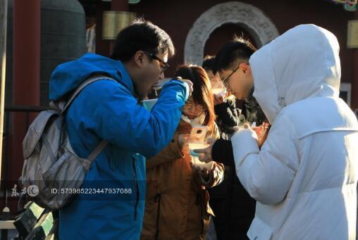 1月13日,中国传统节日腊八节,北京民众前往恢复东岳庙旧有“舍粥”习俗的北京民俗博物馆争喝腊八粥。