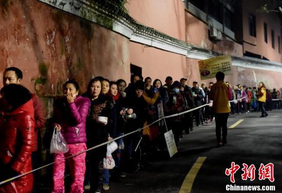 腊八节当天凌晨6点,众多市民在重庆华岩寺排队领取腊八粥。周毅摄