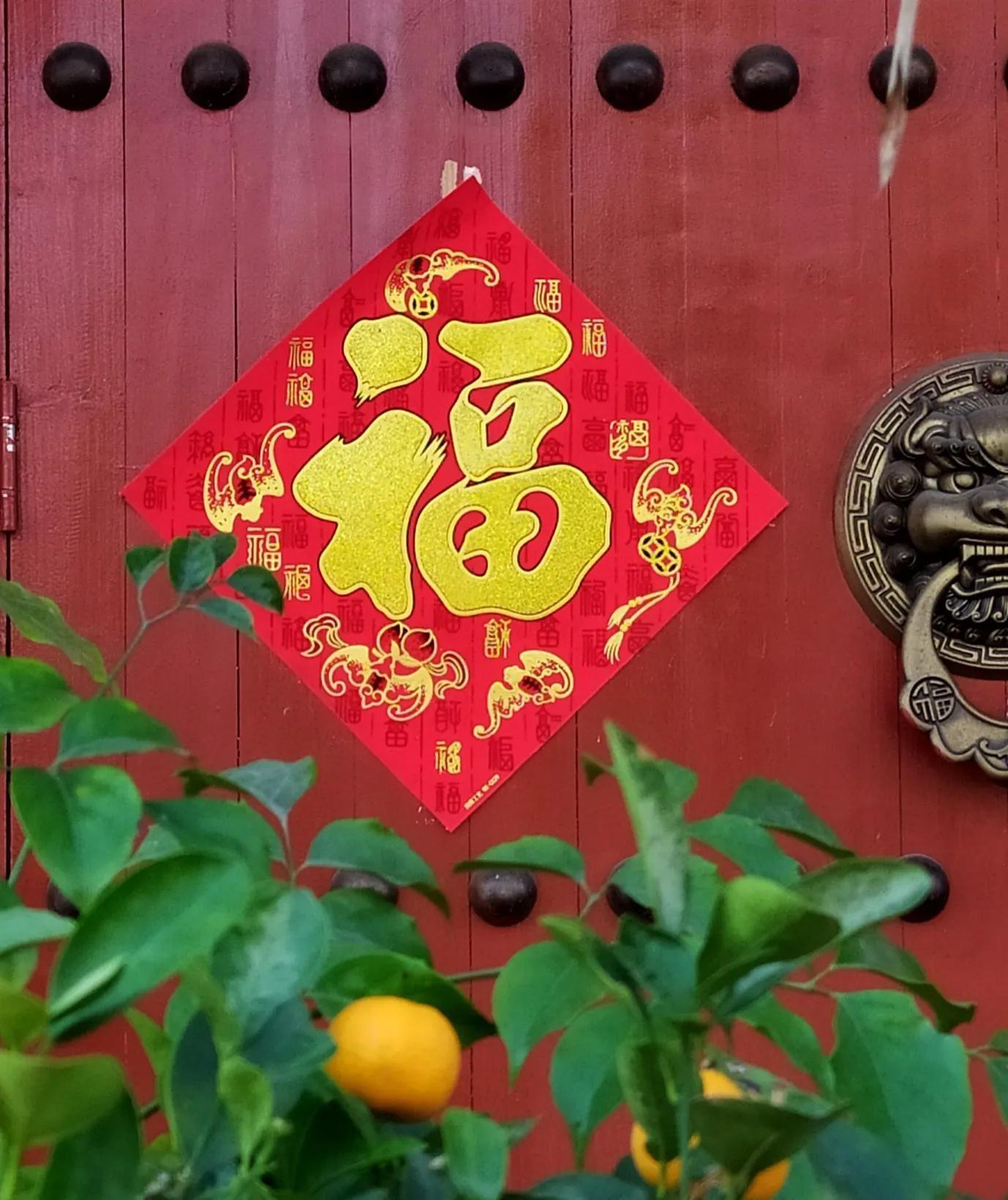 大门上的福字有迎福、纳福、福气临门之意,而且大门是庄重和恭敬的地方,讲究对称,方正,所以大门上的福字要正着贴。如果倒着贴,那福气就进不来,福气就有可能跑走了。