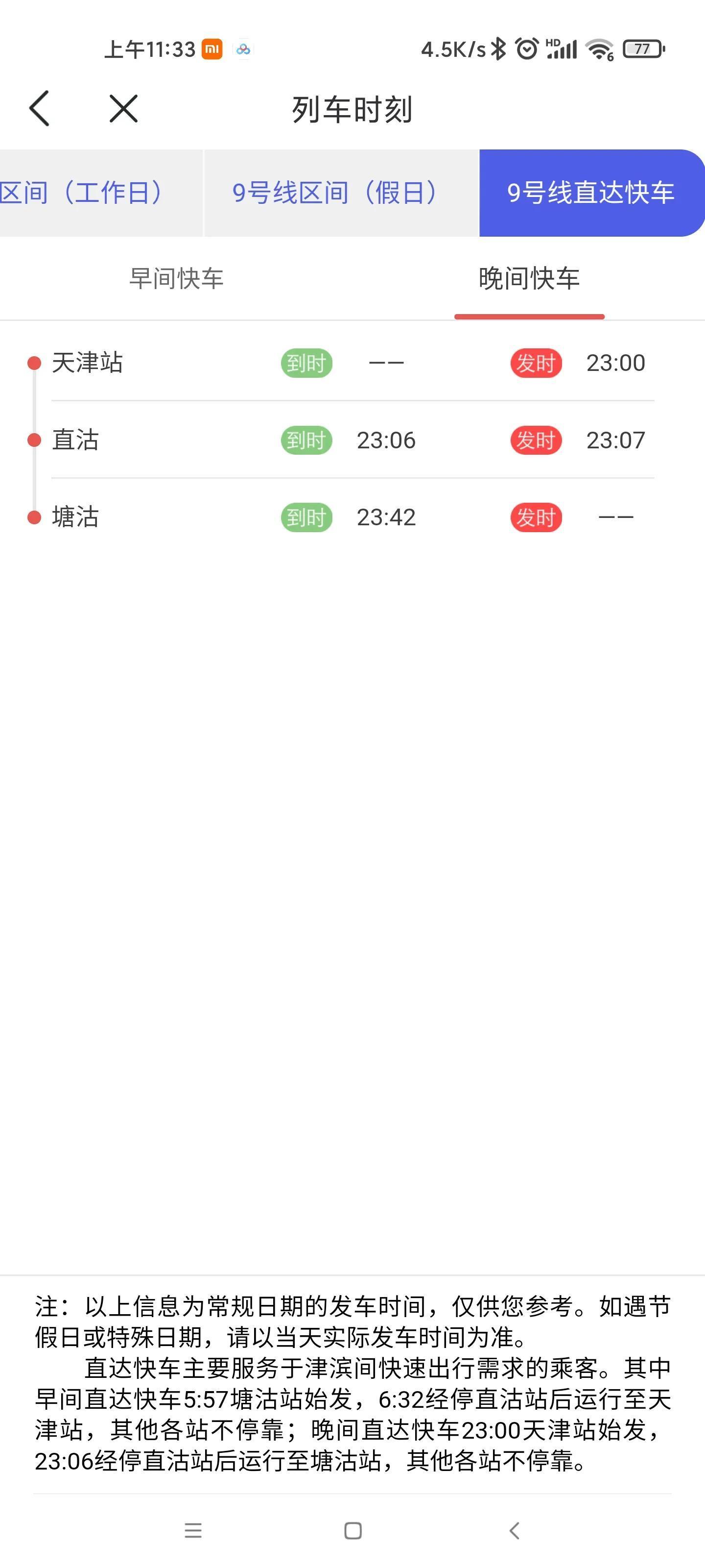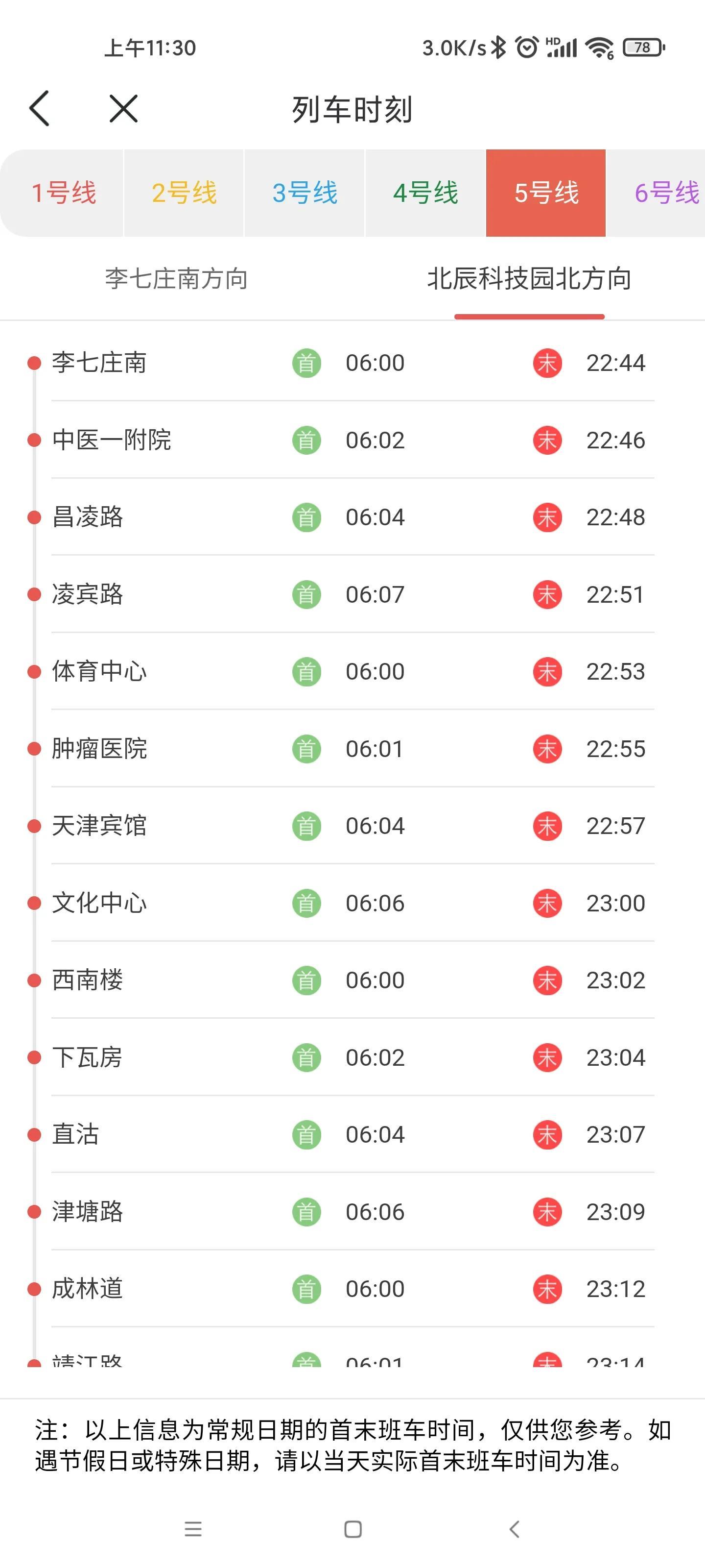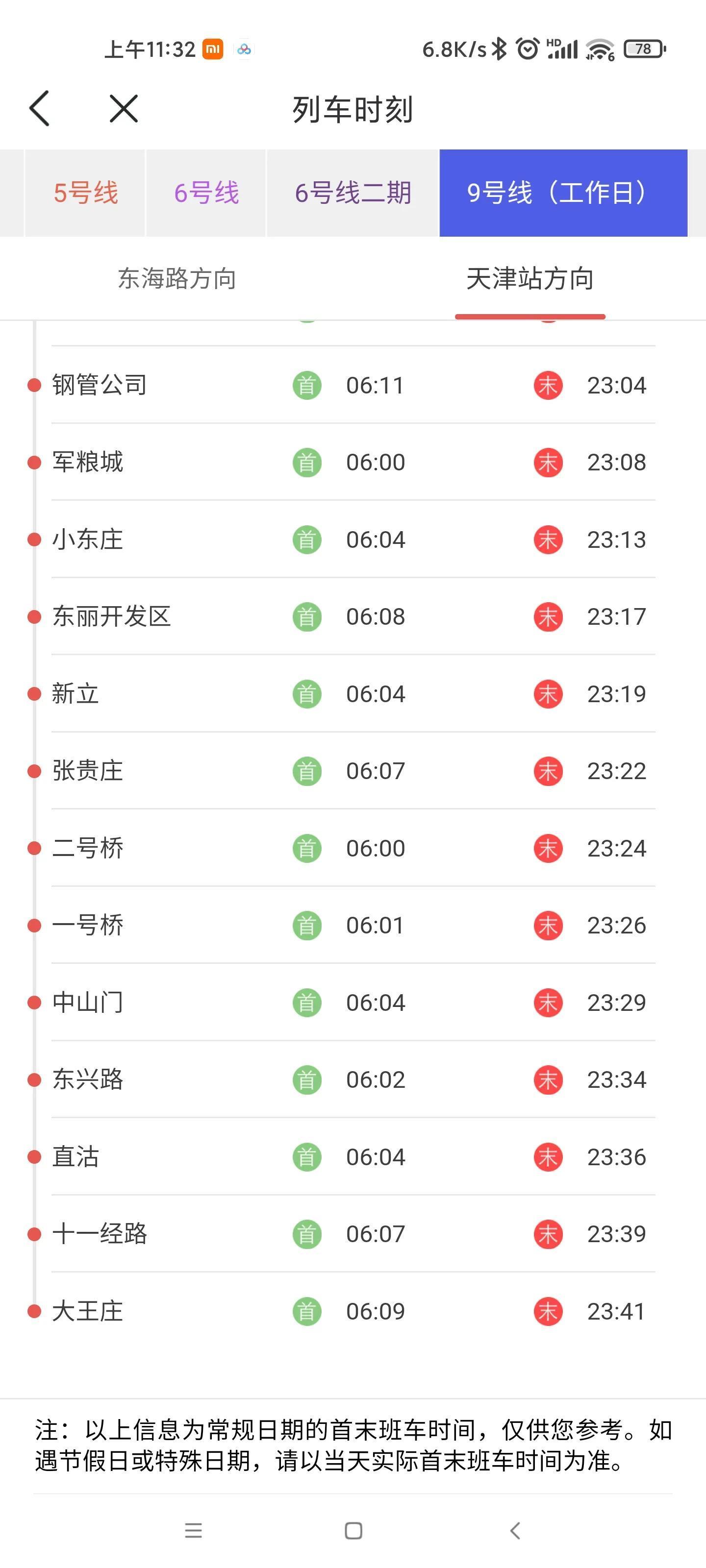以下列车时刻表为已官方公布信息,常规日期首末班车时刻表,如遇特殊节假日、特殊保障期,请以天津地铁官方公布为准。