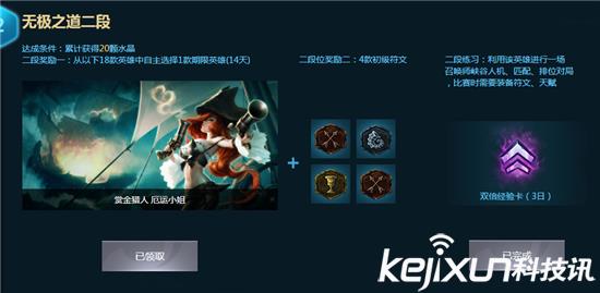 答:传承——无极之道活动面向所有玩家,玩家只要收集足够的水晶数量或完成制定的任务,即可参与领取奖励,除了无极之道五段需要30级以上玩家领取以外,其他均不受级别限制。2.我将如何领取奖励?