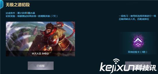 初段奖励:根据测试结果获得一款期限英雄(7天)