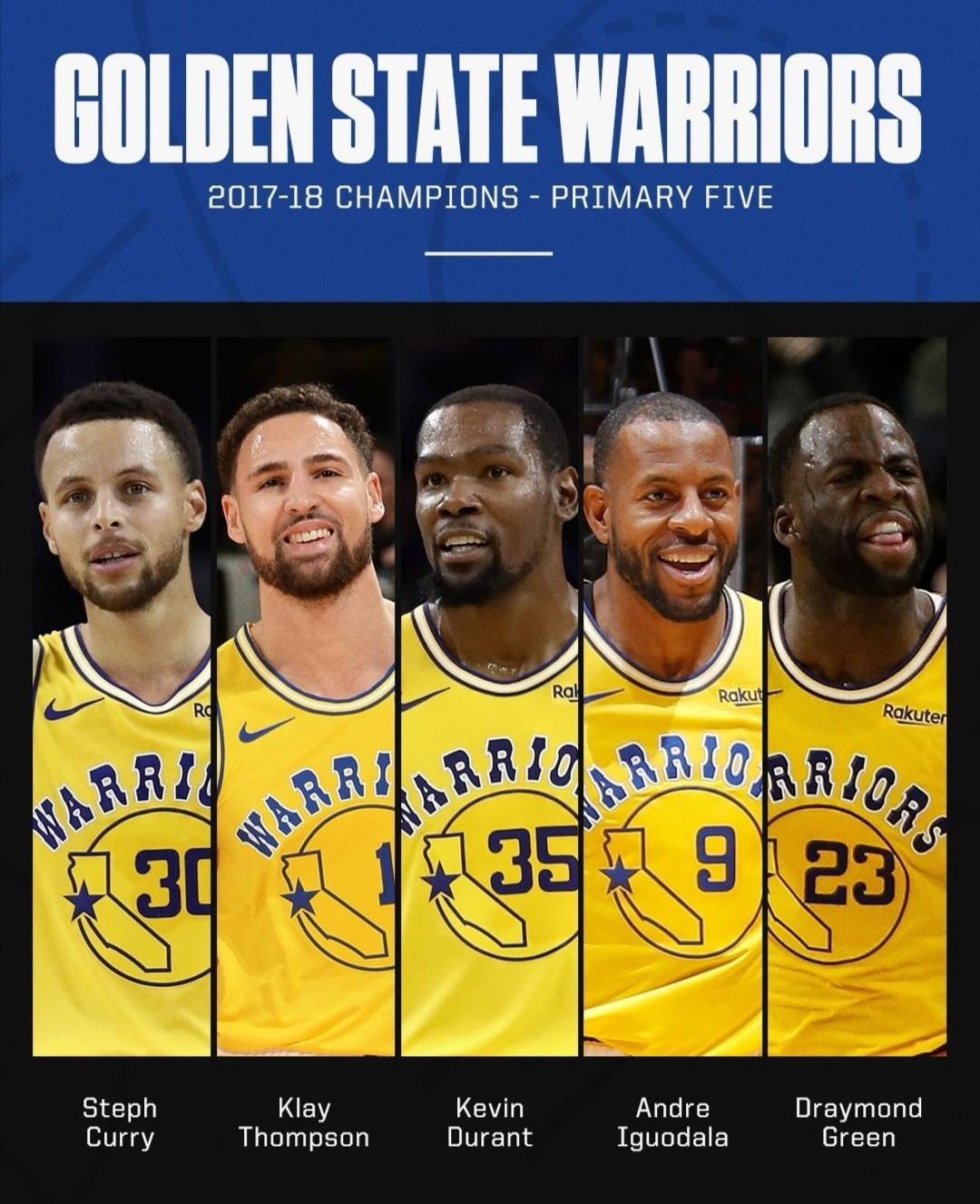 库里、汤普森、杜兰特、伊戈达拉、格林