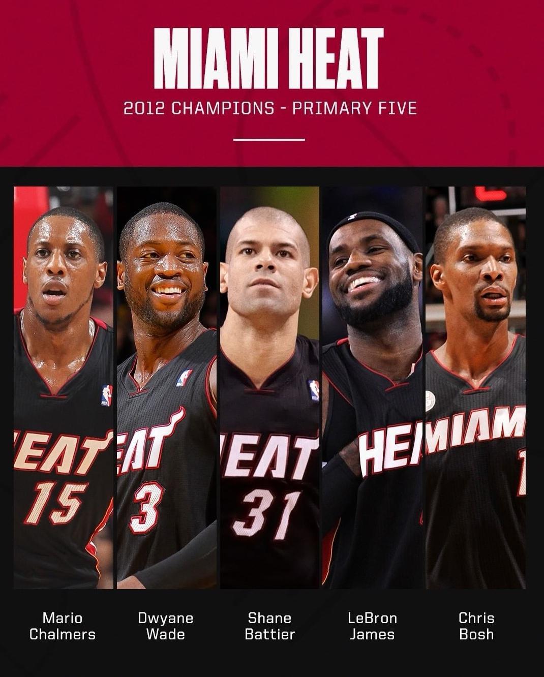 这是热火三巨头时期的最后一个总冠军,三巨头的实力不必多言,而雷阿伦的加盟在三巨头的基础上提高了球队的投射能力,更好地为詹姆斯、韦德等人冲击内线拉开空间,人们不会忘记他在总决赛对阵马刺的那记绝平三分,其后又在加时赛连砍8分,带走比赛,他可是历史级别的射手。查尔莫斯是两次热火总冠军的首发后卫,他运动能力平平,投射能力较为出色,突破一般,传球能力也还在线,不过和三巨头加上雷阿伦这样的队友在一起,他只需要做好自己的本职工作就行。