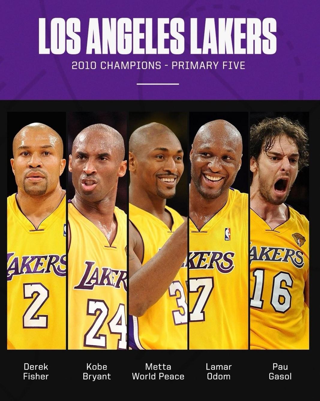 这个冠军似乎和开头来了个前后呼应,当时奥尼尔已经出走。费舍尔在这之前已经有过四届总冠军经验,不是明星球员,但是兢兢业业、沉着稳重,关键时刻不掉链子,投篮有准头。慈世平,凶狠的防守球员,入选过全明星;大前锋奥多姆身手全面,能突能投,因此他在面对比自己大个的球员时,可以选择外线和突破。保罗·加索尔,湖人的传奇球星,这个时候还是全明星级别的球员,湖人妥妥的内线大闸。科比,不必多言,永远的神,RIP,老大哥。