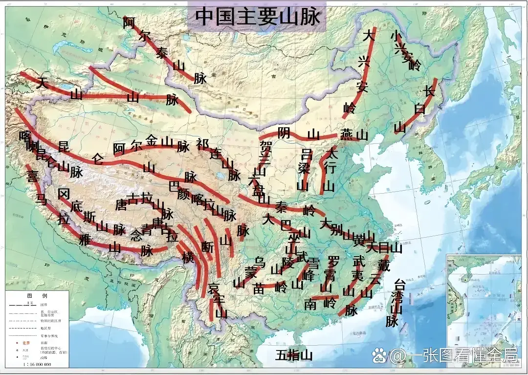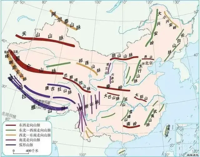 图25,中国主要山脉走向(地形版)