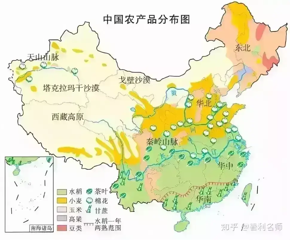 看一下小麦和水稻分界线是哪里?这条分界线到底有什么神奇之处?为什么很多的分界线跟这个分界基本重合?