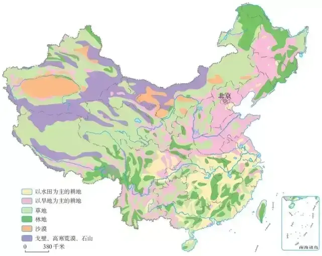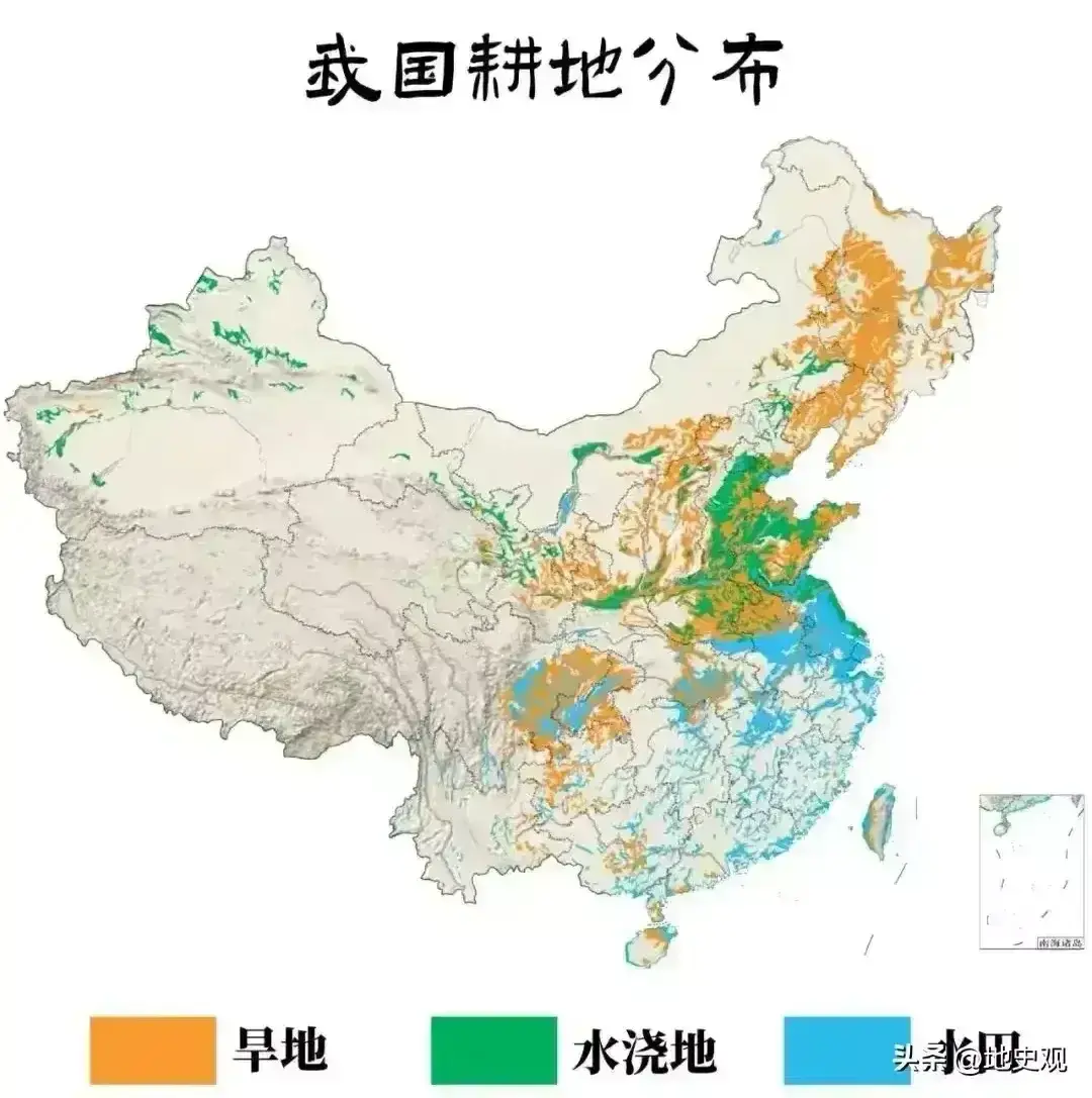 图32,中国耕地分布示意图。
