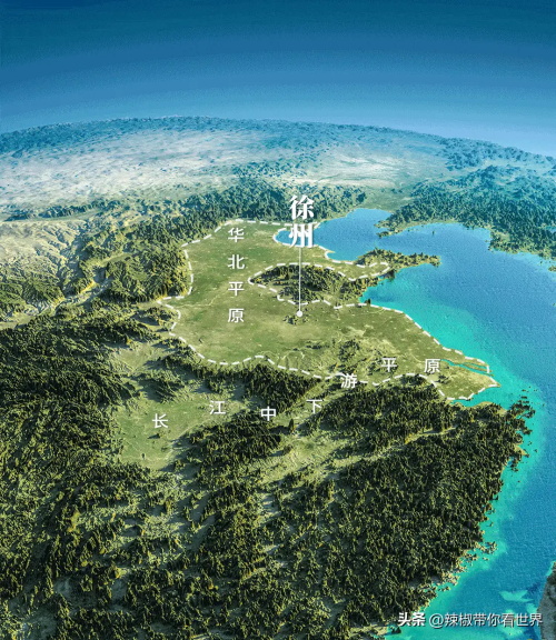 图16,中国东部和中部地势图一览。思考一下徐州在华北平原的重要性。
