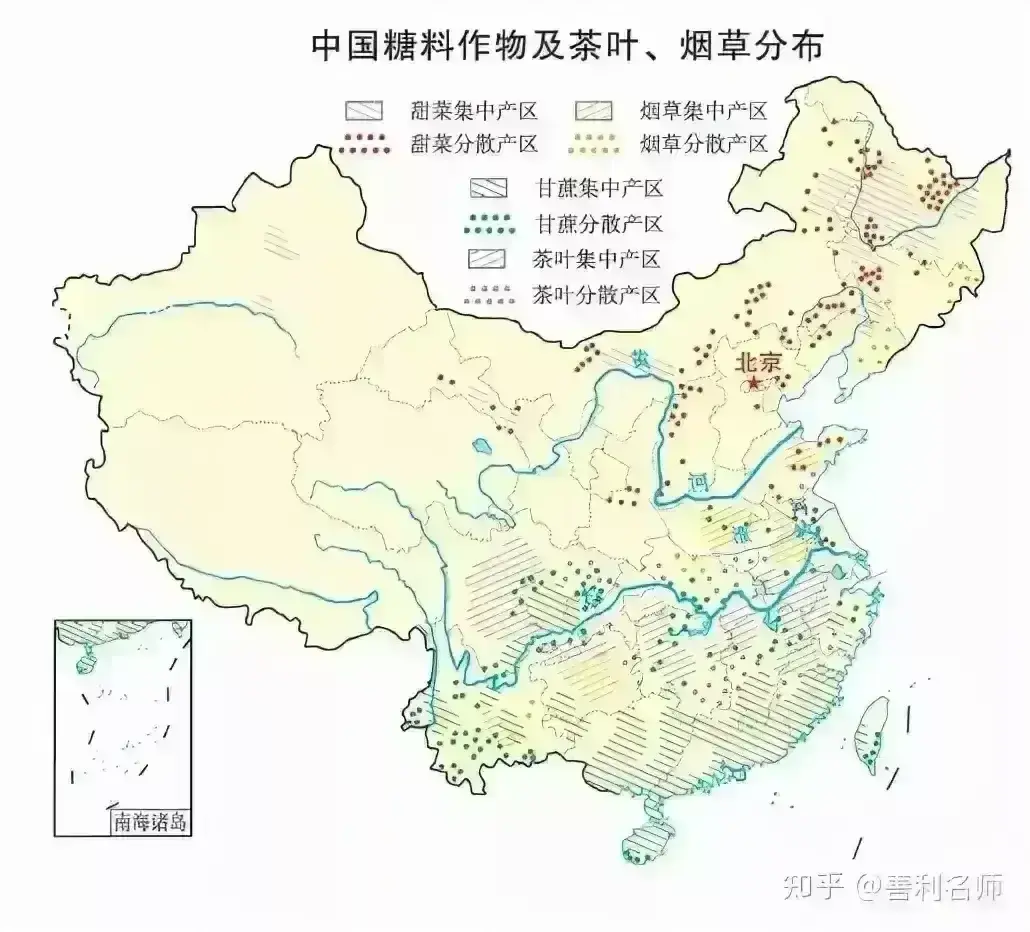图39,我国糖料作物及茶叶、烟草分布图。