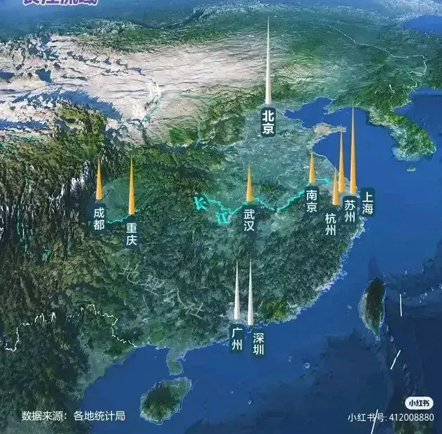 图9,中国十大城市分布图。可以看出中国地形河流分布情况。