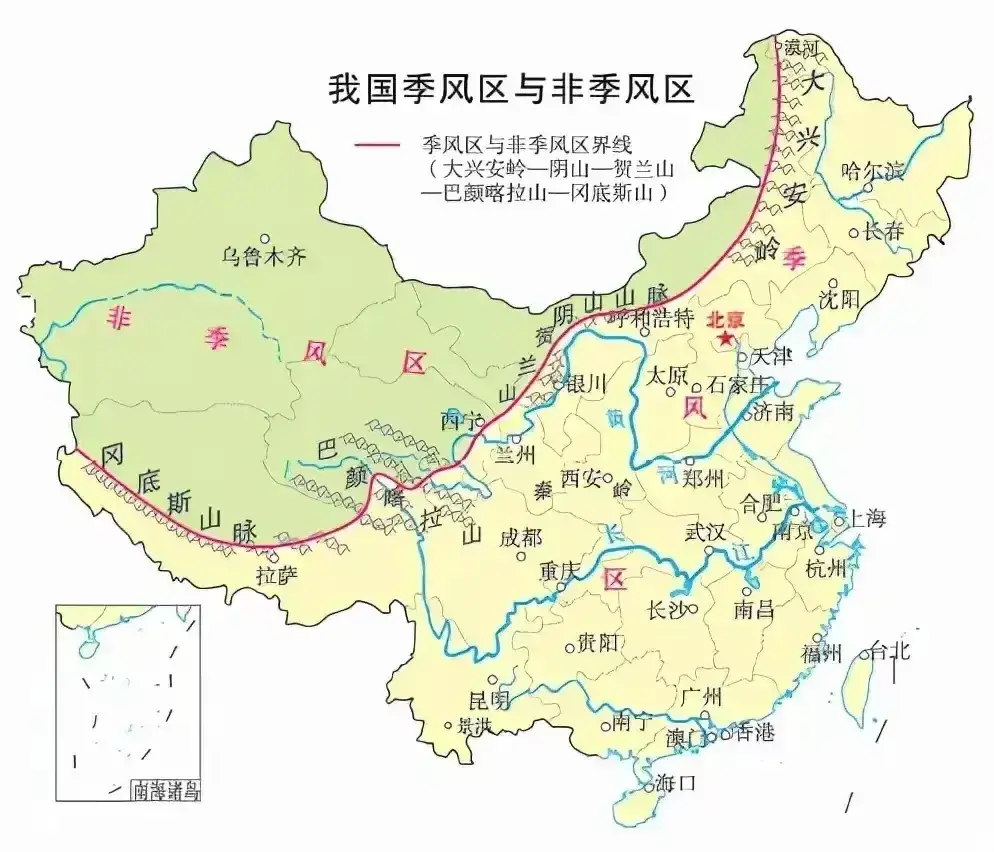 图26,中国季风与非季风气候分布