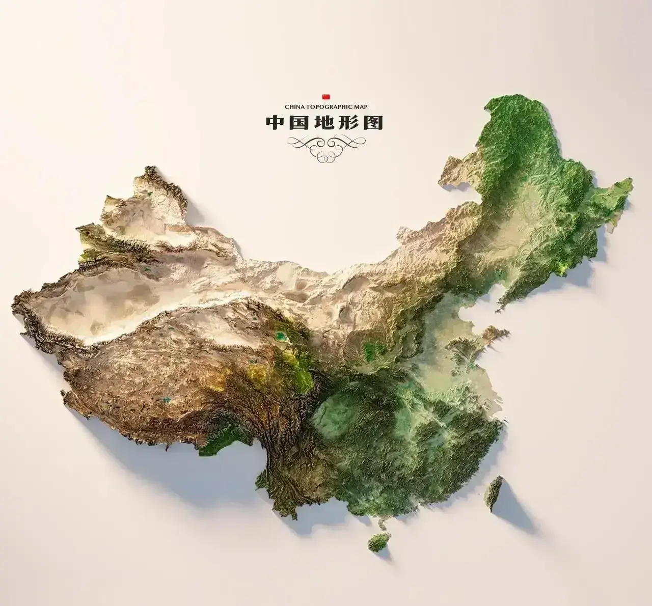 图6,中国国家地理提供的中国地形图(凹凸版)。
