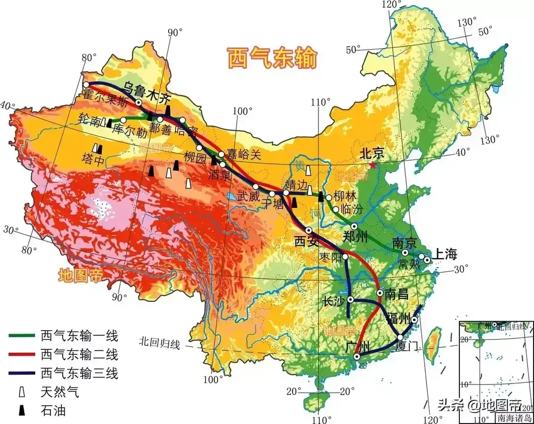 图35,西气东输管道线路图。