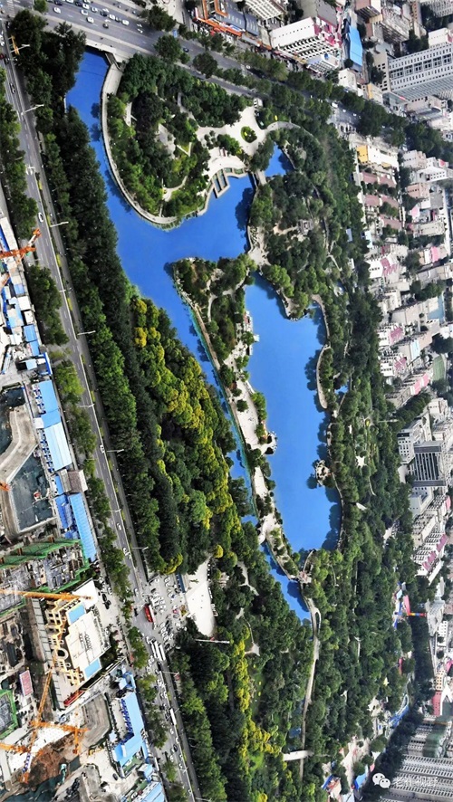 (滏阳公园全景。请横屏观看。摄影@邯郸老崔)▼