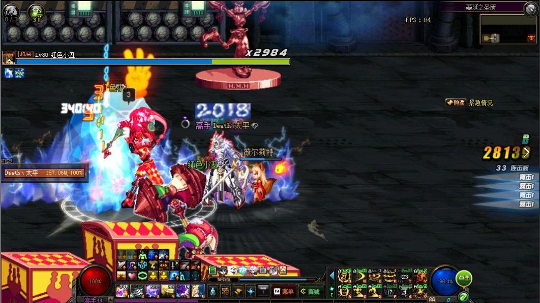 推荐连招:等小丑破除无敌后,红阵+雷云+鬼印珠+邪光斩+波爆+小冰+小火!